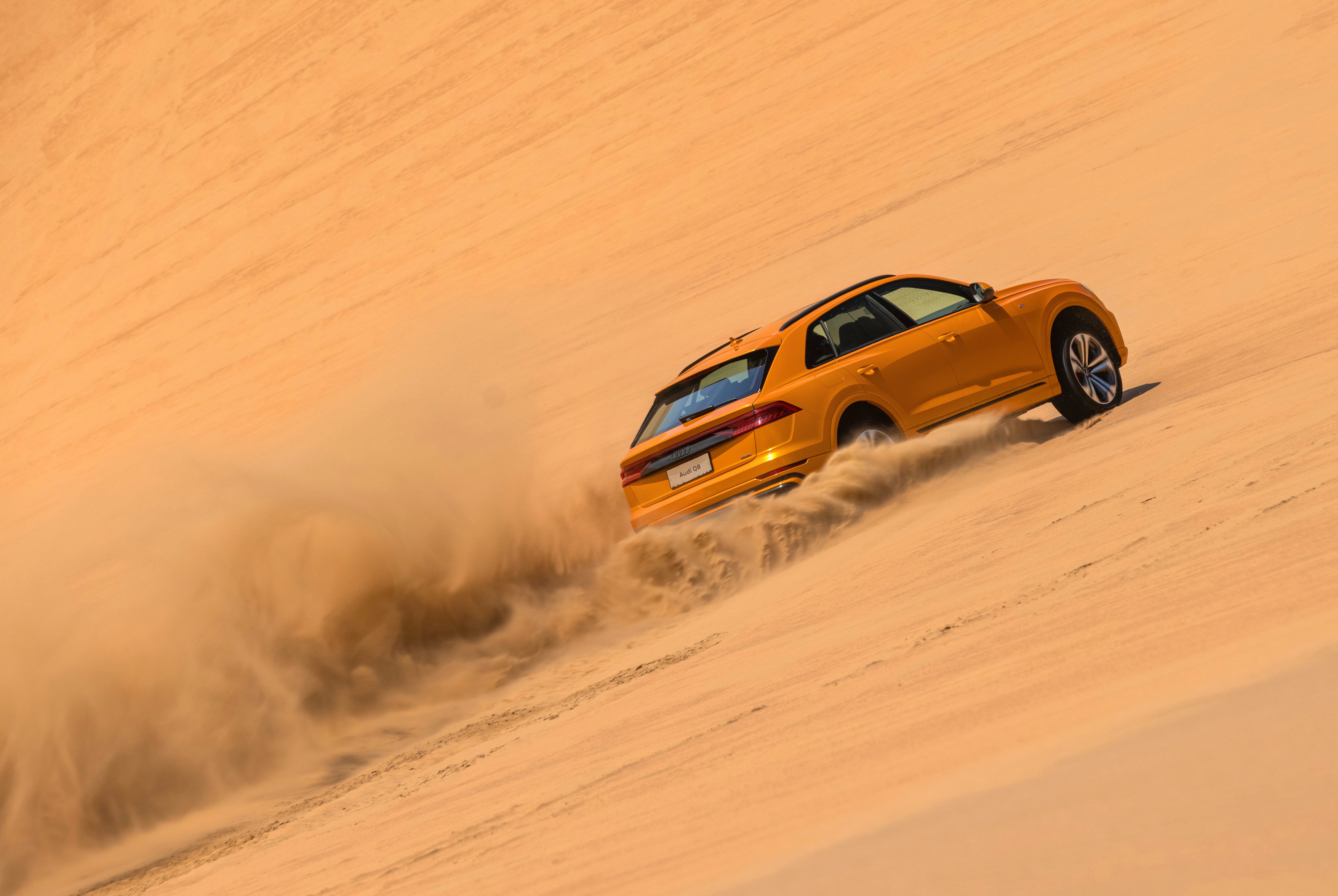 就比如在穿越無盡沙漠之中,2023款奧迪Q8給筆者留下深刻印象。車圈常說“盡管踩油門,剩下交給quattro”,深入沙漠腹地,2023款奧迪Q8標配的quattro全時四驅系統(tǒng)便派上用場了,純機械中央差速器以40:60比例將動力傳送至前后軸,極限條件下可達到30:70,甚至15:85,另外,由于2023款奧迪Q8采用全鋁車身最大程度降低車重,我們在進入沙漠試駕之前甚至沒有放低胎壓,在這樣的條件下,全程使用越野模式,輕松完成穿越。